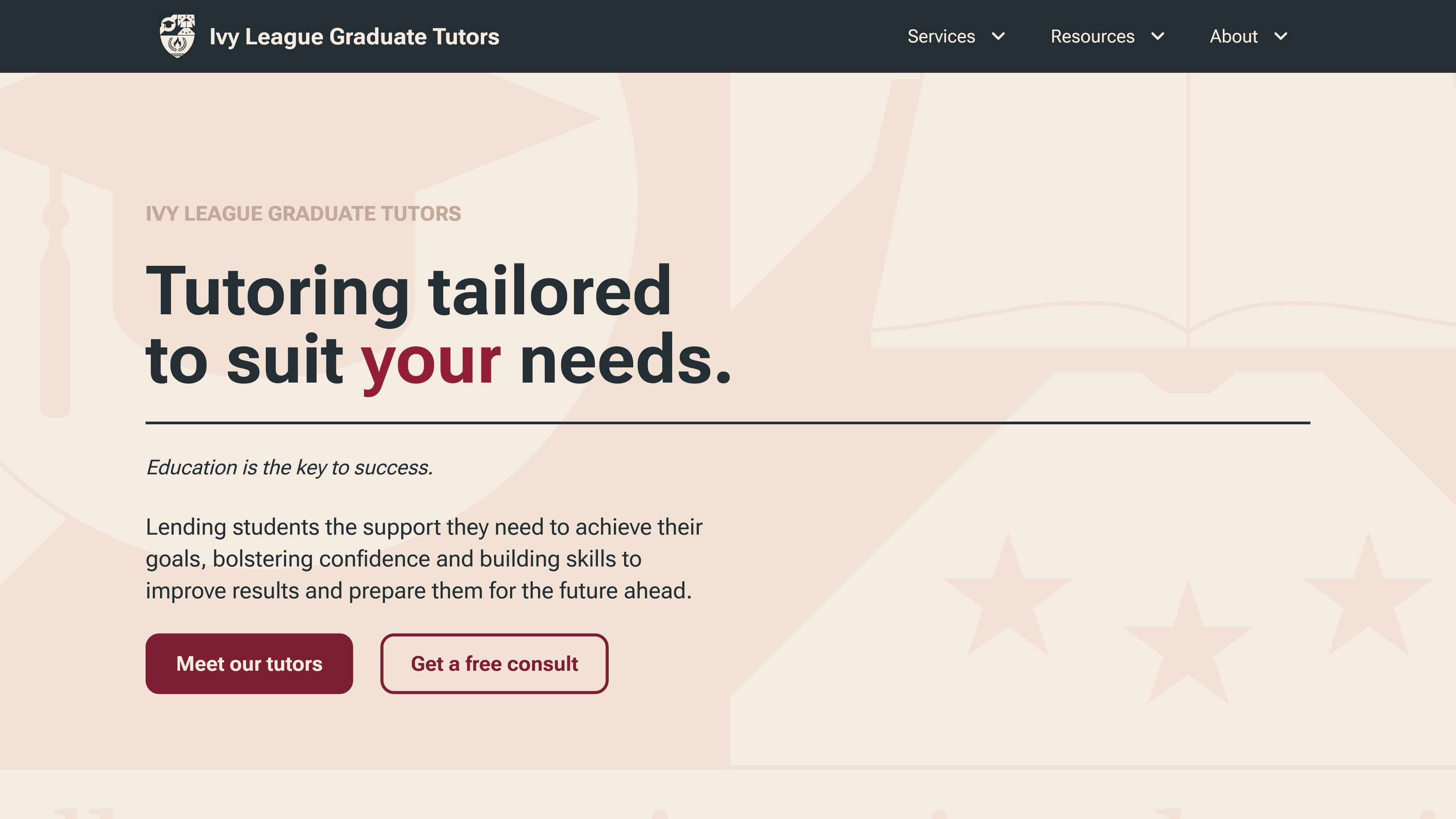 The new design features a lot of improvements over the existing site, which I also designed about 4 years ago. You can view the original site here: https://ivyleaguegraduatetutors.com/ https://ivyleaguegraduatetutors.com/ open_in_new